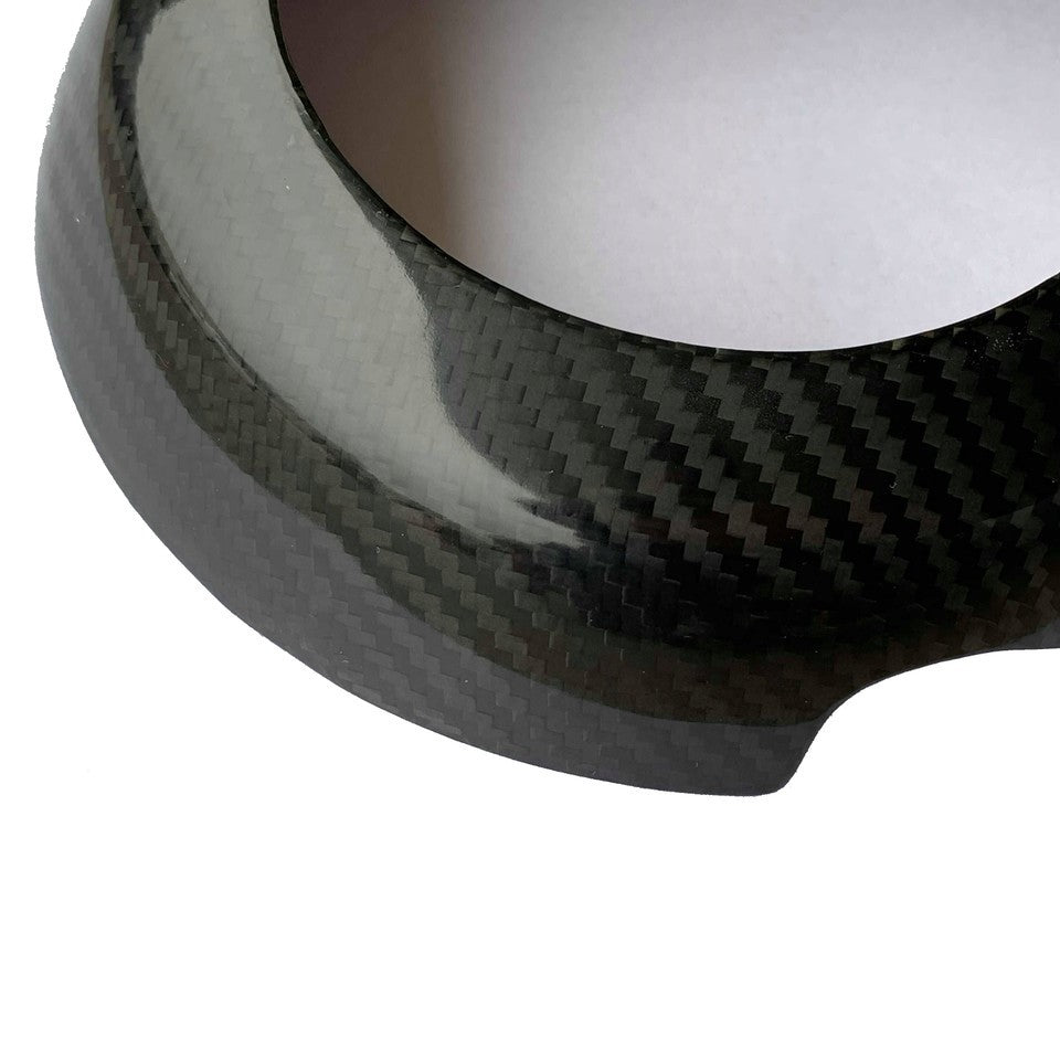 Upgrade your Audi interior with this premium Carbon Fiber Steering Wheel Center Cover. Crafted from high-quality carbon fiber with a glossy UV-protected finish, it adds a refined motorsport-inspired touch to your cabin. Designed for an exact fit on factory steering wheels with round shape and left/right cutouts for control spokes.