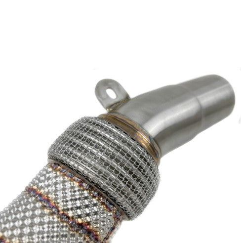 Upgrade your BMW M3 or M4 with the Top Speed Pro-1 high-flow catted turbo downpipes, engineered specifically for the F80 M3 and F82 M4 platforms equipped with the 3.0L twin-turbo S55 engine. Constructed from premium T304 stainless steel, these downpipes feature 200-cell high-flow catalytic converters and OEM-style integrated heat shielding to optimize exhaust flow, reduce turbo lag, and improve overall performance.