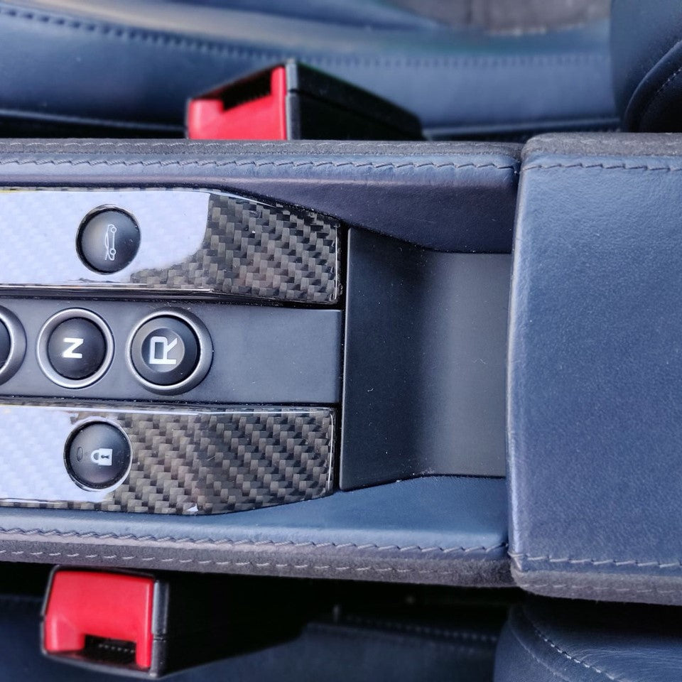 McLaren MP4-12C / 650S / 675LT Carbon Fiber Lower Center Console Insert Cover – Glossy Finish | Interior Trim Upgrade