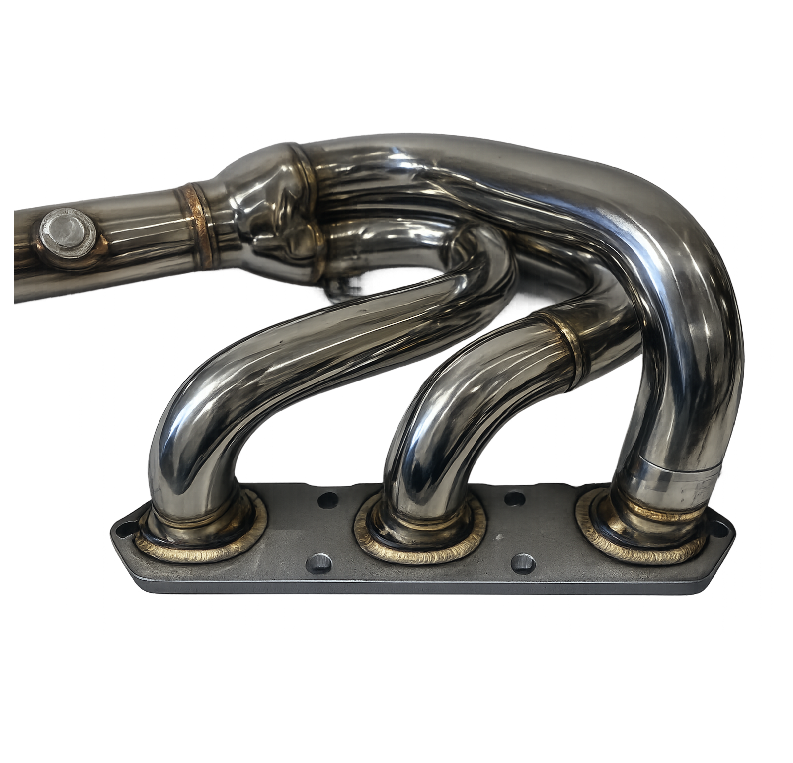 High-quality stainless steel performance headers for the Porsche 986 Boxster, featuring precision TIG-welded T304 stainless steel tubing. Mandrel-bent runners are designed to improve exhaust flow and performance, with port-matched flanges for a precise fit and a polished finish for durability and corrosion resistance.